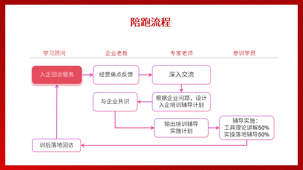 量身定制主題課程,結(jié)合企業(yè)實(shí)際,現(xiàn)場(chǎng)輔導(dǎo)落地