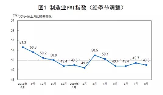 根據(jù)國家統(tǒng)計局8月31日公布的數(shù)據(jù),8月份制造業(yè)PMI為49.5%,位于臨界點之下,低于上月0.2個百分點。