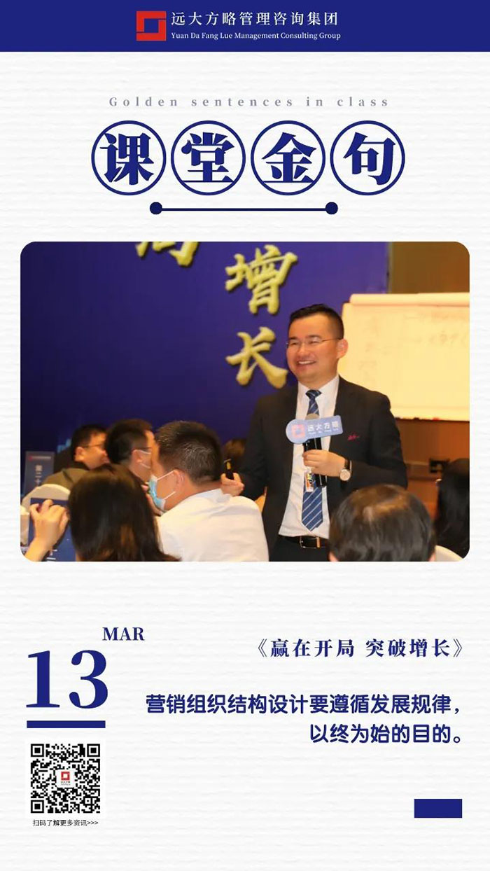 課上老師采用“道、法、術、器”相結合的形式給學員們帶來了一場精彩的知識盛宴。3月13日的課堂上兩位老師也總結了很多金句,可以很好的運用到企業的經營管理中。為了幫助大家更好的吸收和鞏固兩天的學習,小編整理了今天課程雷老師的部分金句分享給大家,希望能給大家帶來更多啟發。