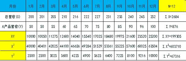 移動平均法比算術平均法先進。它是指在積累了n期銷售量的基礎之上,按照事先確定的期數m(m 預測銷售量=最后m期的平均銷售量+趨勢值 趨勢值=最后移動期的平均值-上一個移動期的平均值 實例如下: 已知:如下的銷量資料,假定銷售量的移動期m為3(季度),趨勢平均值s移動期為3,時間序列期數n為11。要求計算:按移動平均法預測2018年12月的銷售量。 解:依題意計算各期銷售量移動平均值、趨勢值和趨勢值移動平均值,其結果如下示例圖2: 最后一期平均值:(86+91+95)/3=90.67(萬元) 趨勢值=90.67-85.67=5(萬元) 所以12月份的預測營收=90.67+5=95.67(萬元) 移動平均法,既考慮了銷售量的移動平均數,又考慮了趨勢值的移動平均數,邏輯清晰。除移動平均法以外,我們常用的還有加權平均法,加權法相對比較簡單,但有時我們也會加權平均法組合成加權移動平均法。 我們再來看另外一種運用廣泛因果關系的預測分析方法,即線性回歸分析法。 2.線性回歸分析法: 線性回歸分析法也稱二元一次直線分析法,它的模型是Y=AX+B,數學有一定基礎的知道,也就是這類二元一次線性直線。我們先以一個例子假以說明,如下示例圖3: 要求: 用回歸直線分析法建立A產品的營收預測模型; 預測2019年1月份A產品的營收額; 第一步進行調表格調整,如下示例圖4: ▲示例圖4 則線性相關系數R約為1,表明X與Y之間是正相關,符合線性回歸性。如下 示例圖5: 依據公式線性公式可得出A與B的取值,如下示例圖6: 所以:Y=AX+B=1.0061X-152 2019年1月份總營收當255時,則A產品的營收約為:1.0061*255-152=104.5(萬元) 或許有人會說這個計算的過程相對較為復雜,有沒有相對更簡單的方法?答案是肯定的。在EXCEL函數中,FORECAST回歸預測法,正是上面推導的一個應用工具函數。具體使用方法如下示例圖7,計算出結果是104.2萬元;其結果與上面計算得出的104.5兩者的吻合度99.97%,是非常高的。 ▲示例圖7 二、修正預測數據 在實際的管理中,因為特殊的節點等因素,部分數據會異常突變,我們可稱之這異常數據,在做數據分析時,我們為避免異常數據平均化,須提前把那一類的數據單獨加工處理。 1.異常節點維度 (1) 特殊時期(春節、國慶、雙11、黑色星期五等)活動的趨勢; (2) NPI(新產品導入)快速切入要求; (3) 滯銷或呆滯的要求; (4) ECN(工程切換)要求; (5) MPQ(較小包裝量)、MOQ(較小訂單量)等原因; (6) 增量幅度; (7) 重大品質客訴; 2.預測期數 銷售預測時,為避免數據短期波動,我們在取數時應考慮的期數盡量要長。 (1) 做年度預測,建議取近2年整年度的數據,即N=24; (2) 做季度預測,建議取近12個月年數據,即N=12; (3) 做月度預測,建議取近6個月年數據。即N=6; 實際的管理中,無論是銷售管理還是庫存管理,要做到精細化預測其難度遠不僅限以上要求。還有許許多多的無法控制的外在因素,比如:大的經濟環境、同行競爭、競爭品等。只有我們熟練地掌握預測的工具并科學加以運用,同時結合適度提前考慮等外在因素可能會造成的影響,唯有這樣,我們的預測才能做到貼合于實際,也才會更精準。
