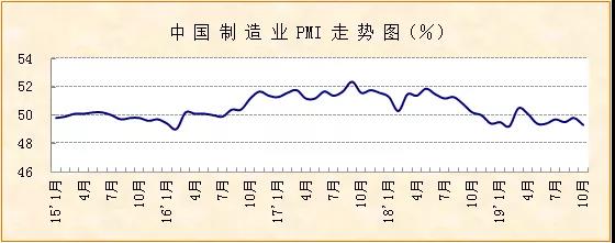 中國物流與采購聯合會、國家統計局服務業調查中心發布的2019年10月份中國制造業采購經理指數(PMI)為49.3%,較上月下降0.5個百分點,創今年二季度以來較低水平。分項指數顯示,本月市場需求降至收縮區間,企業生產和采購增速放緩。但經濟結構優化,新動能和消費品行業加速擴張,就業相對穩定。綜合來看,經濟增速放緩,發展質量提升。