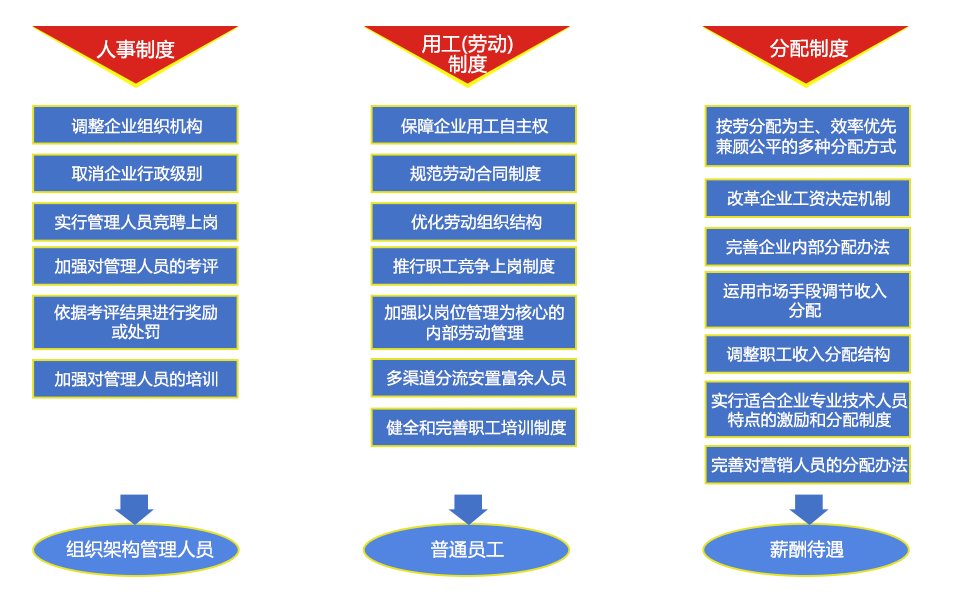 ◆  分配方面:包括企業工資總額決定機制、薪酬績效考核、混合所有制改革、員工持股、改革容錯機制等。