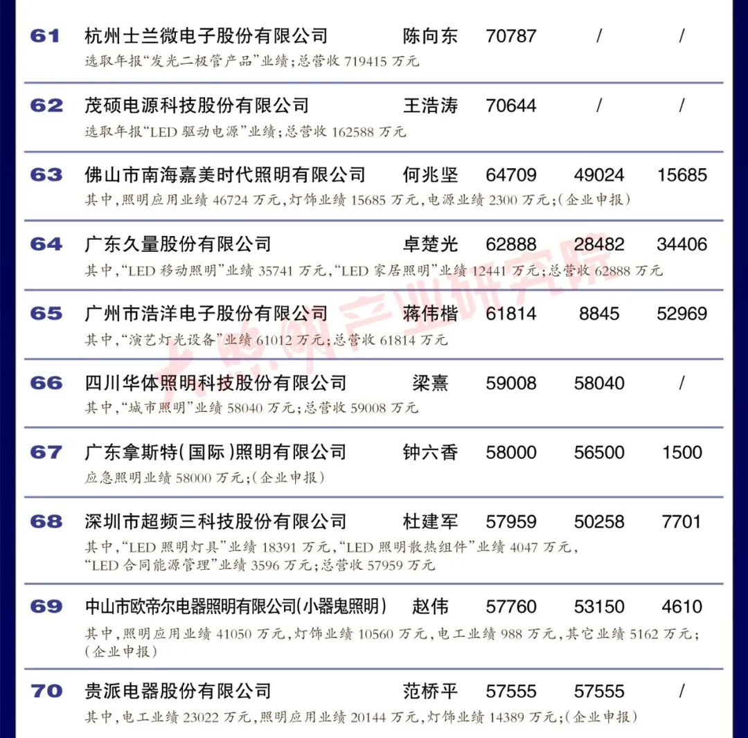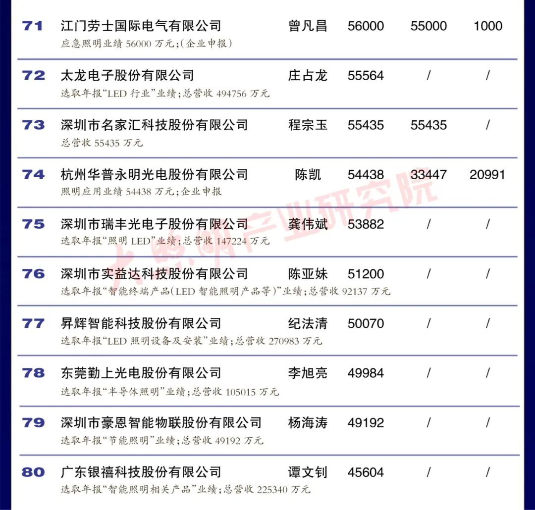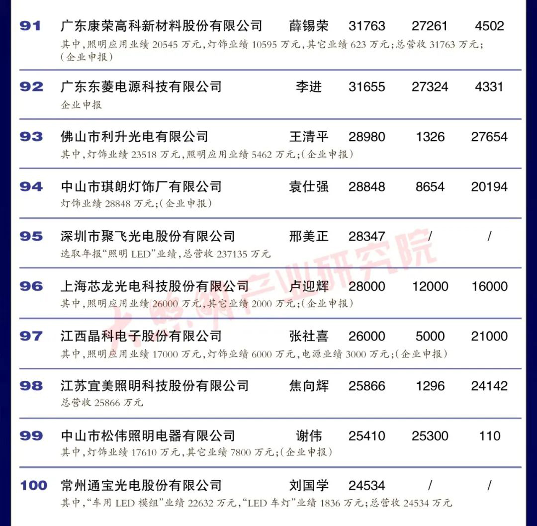 從銷售規模來看,中國led燈排行榜中有3家企業銷 售突破100億元,有4家企業銷售在50 100億元之間,有35家企業銷售在10-50億元之間,有35家企業銷售在5-10億元之間,余23家企業銷售在5億元以下。