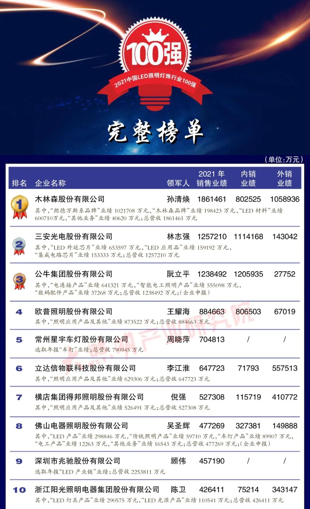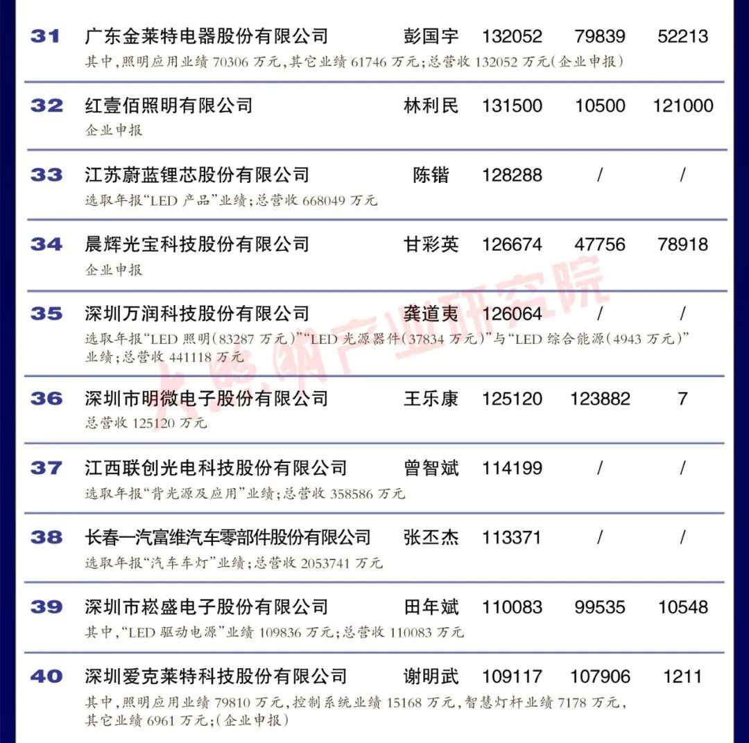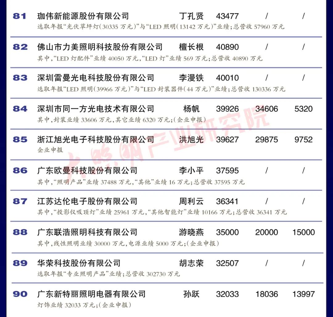 從銷售規模來看,中國led燈排行榜中有3家企業銷 售突破100億元,有4家企業銷售在50 100億元之間,有35家企業銷售在10-50億元之間,有35家企業銷售在5-10億元之間,余23家企業銷售在5億元以下。