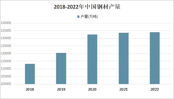 鋼材是鋼錠、鋼坯或鋼材通過壓力加工制成的一定形狀、尺寸和性能的材料。大部分鋼材加工都是通過壓力加工,使被加工的鋼(坯、錠等)產(chǎn)生塑性變形。根據(jù)鋼材加工溫度不同,可以分為冷加工和熱加工兩種。從數(shù)據(jù)來看,我國鋼材產(chǎn)量在2018-2020年增速較快,2020-2020趨于穩(wěn)定,總體呈現(xiàn)穩(wěn)定上升的趨勢,2022年我國鋼材產(chǎn)量為134033.5萬噸,較上年增加366.67萬噸。鋼材、鋁材等基礎(chǔ)原材料的充足供應(yīng),為產(chǎn)業(yè)鏈中游智能制造裝備產(chǎn)業(yè)的快速發(fā)展奠定了基礎(chǔ)。