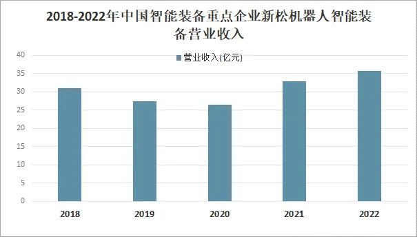 新松機(jī)器人股份有限公司是智能裝備企業(yè)龍頭企業(yè)之一,其智能裝備業(yè)務(wù)主要圍繞公司機(jī)器人核心產(chǎn)品領(lǐng)域所形成的自動化產(chǎn)線應(yīng)用,主要包括焊接自動化、裝配自動化和物流自動化。2021年由于“十四五”政策,國家大力支持發(fā)展智能裝備制造,2022年新松機(jī)器人智能裝備業(yè)務(wù)營業(yè)收入繼續(xù)增加,營業(yè)收入為35.72億元,較2021年同比增長8.42%。