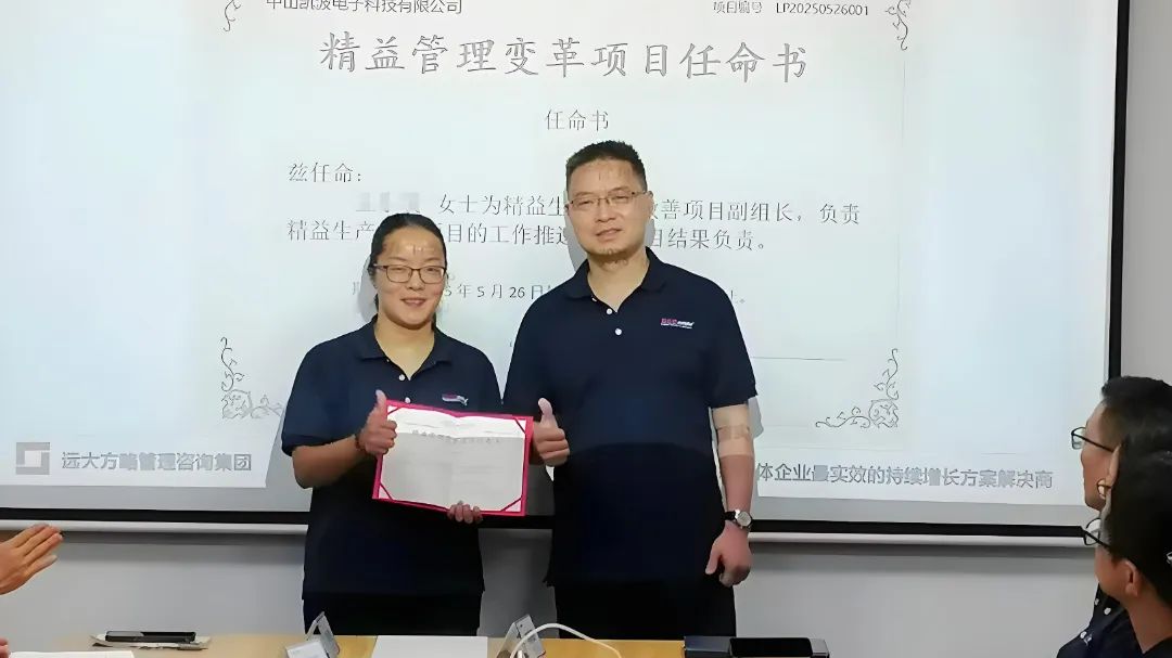 近日,中山凱波電子科技有限公司(以下簡稱“凱波科技”)攜手遠大方略啟動《精益管理》咨詢項目,幫助企業建立全員精益思維,搭建科學合理的精益管理體系,內部運營實現標準化、規范化、流程化以及制度化,提升企業整體效率,實現人效、利潤與產值的持續增長。