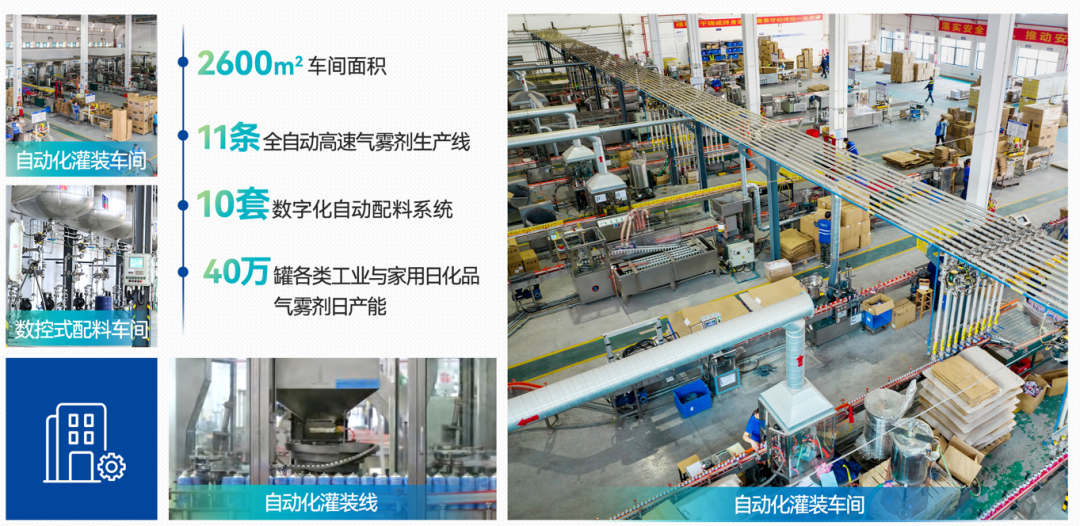 信鵬化工擁有甲、乙、丙類立體倉庫各一棟,2022 年投入落成 3600 平方米的專業(yè)級(jí)氣霧劑化妝品車間,符合 GMP 車間 10 萬級(jí)的潔凈度標(biāo)準(zhǔn)要求,同時(shí)搭配 4 條化妝品專用全自動(dòng)氣霧劑充填生產(chǎn)線及乳化配料系統(tǒng);公司擁有一支二十多年氣霧劑研發(fā)生產(chǎn)經(jīng)驗(yàn)的管理團(tuán)隊(duì), 技術(shù)和研發(fā)實(shí)力雄厚,為珠三角內(nèi)為數(shù)不多的在化工園區(qū)內(nèi)合規(guī)的專業(yè)氣霧劑制造基地;企業(yè)擁有自主進(jìn)出口權(quán),已取得危險(xiǎn)化學(xué)品生產(chǎn)許可證、化妝品生產(chǎn)許可證、農(nóng)藥生產(chǎn)許可證、ISO9001、ISO14001 質(zhì)量管理體系,IATF16949、ISO22716體系、GMPC 等資質(zhì)認(rèn)證。