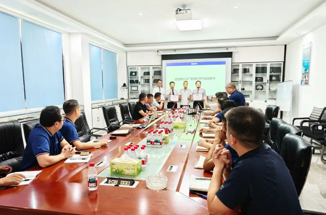 為促進項目的有效落地,會上竣邦公司領導為駐廠老師頒發了聘書和授權書。