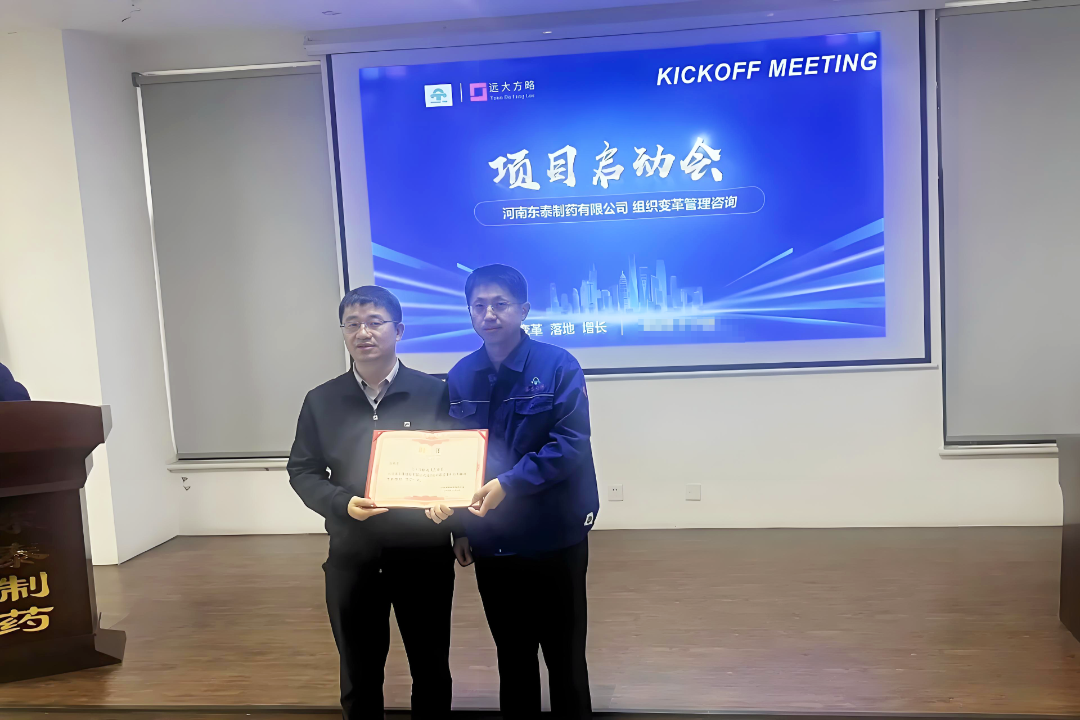 近日,河南東泰制藥有限公司(以下簡稱“河南東泰制藥”)攜手遠大方略啟動《組織優化管理變革》咨詢項目,構建更加科學合理的組織架構,提升跨部門協作能力,完善薪酬與績效體系,充分激發員工的工作積極性與創造力,全面優化運營流程,降低內耗、提升效率,構建能夠支撐企業持續發展的組織能力,為企業的長遠發展奠定堅實基礎。